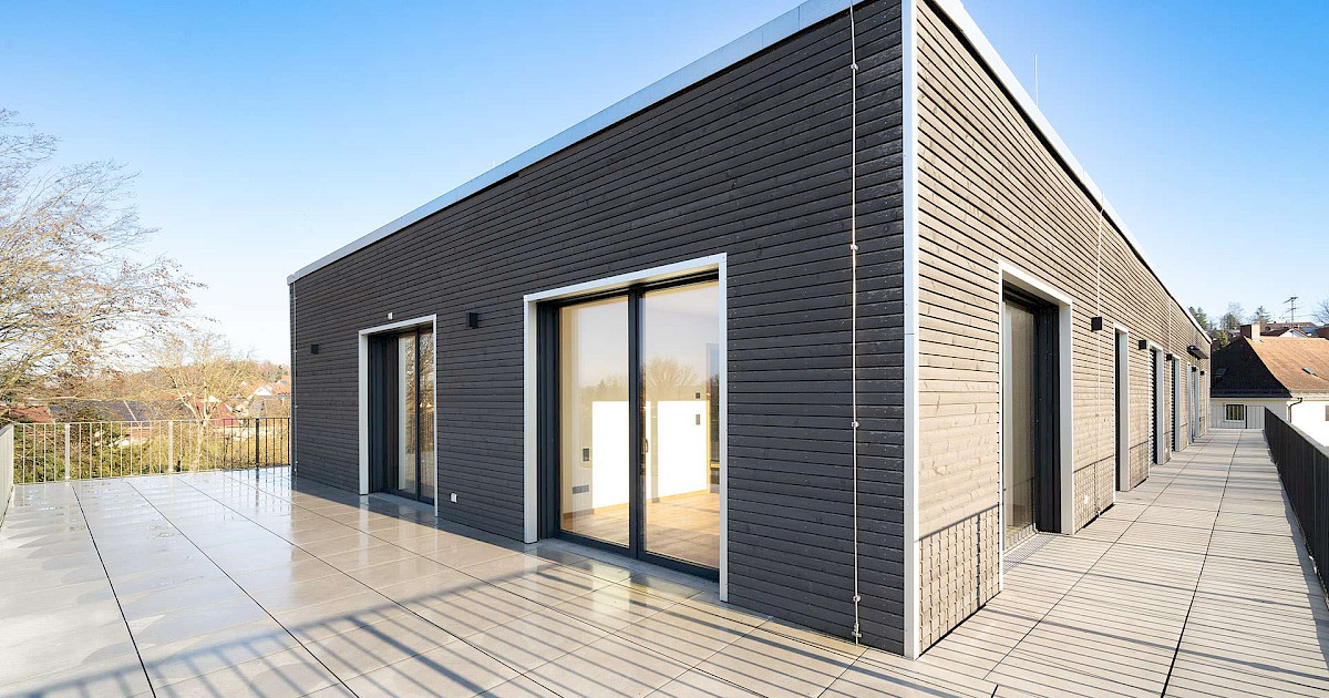 Bei diesem Angebot handelt es sich um eine Penthouse-Wohnung der Extraklasse zum Erstbezug. Die Einheit befindet sich im 2. Obergeschoss eines neugebauten Mehrfamilienhauses mit insgesamt 18 Wohneinheiten. Auf ca. 133 m² Wohnfläche stehen Ihnen ein geräumiger Wohn-, Ess- und Kochbereich, 3 Schlafzimmer, ein Badezimmer und eine umlaufende, ca. 72 m² große Dachterrasse, die anteilig, zu 25 %, in der ausgewiesenen Wohnfläche berücksichtigt ist zur Verfügung. Die Einheit kann sowohl über das geräumige Treppenhaus als auch bequem über den großen Personenaufzug erreicht werden und ist durchgehend barrierefrei gestaltet.