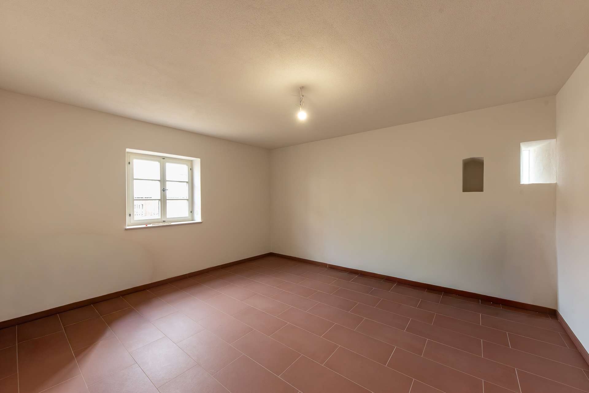 Historischer Charakter trifft auf moderne Energieeffizienz: Das Gebäude, ein ehemaliges Gasthaus aus dem Jahr 1819, wurde mit viel Fingerspitzengefühl und großem Respekt vor seiner Geschichte kernsaniert. Ziel war es, den ursprünglichen Charakter zu bewahren und gleichzeitig zeitgemäßen Wohnansprüchen gerecht zu werden – eine Verbindung, die hier in beeindruckender Weise gelungen ist. Restaurierte Sichtbalken und freigelegte Stahlträger setzen markante Akzente und unterstreichen den besonderen Charakter des Hauses. Dreifachverglaste Sprossenfenster fügen sich harmonisch in das historische Gesamtbild ein und sorgen gleichzeitig für hervorragende Energieeffizienz. Die Wohnung ist durchgängig mit rötlichen Bodenfliesen ausgestattet, die ein warmes und stimmiges Wohngefühl vermitteln. Beheizt werden sämtliche Räume über eine komfortable Fußbodenheizung. Die umweltfreundliche Wärmeversorgung auf Basis von Holzpellets unterstreicht den nachhaltigen Anspruch des Objekts. Die Bezugsfertigkeit ist bis Ende April vorgesehen. Im Anschluss erfolgen noch Arbeiten an den Außenanlagen sowie eine denkmalgerechte Fassadenrestaurierung. Nennenswerte Lärmbelästigungen sind hierbei nicht zu erwarten.