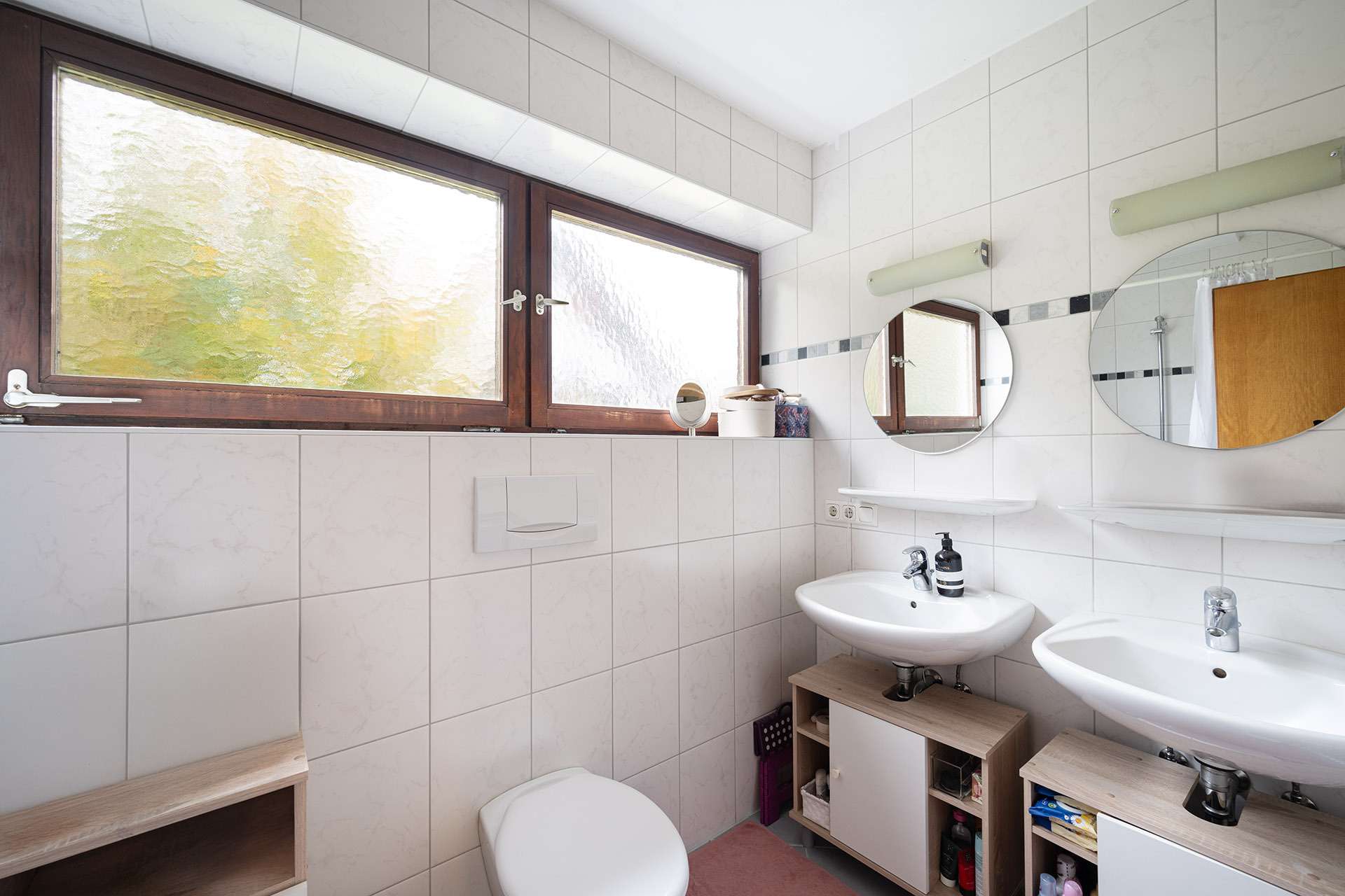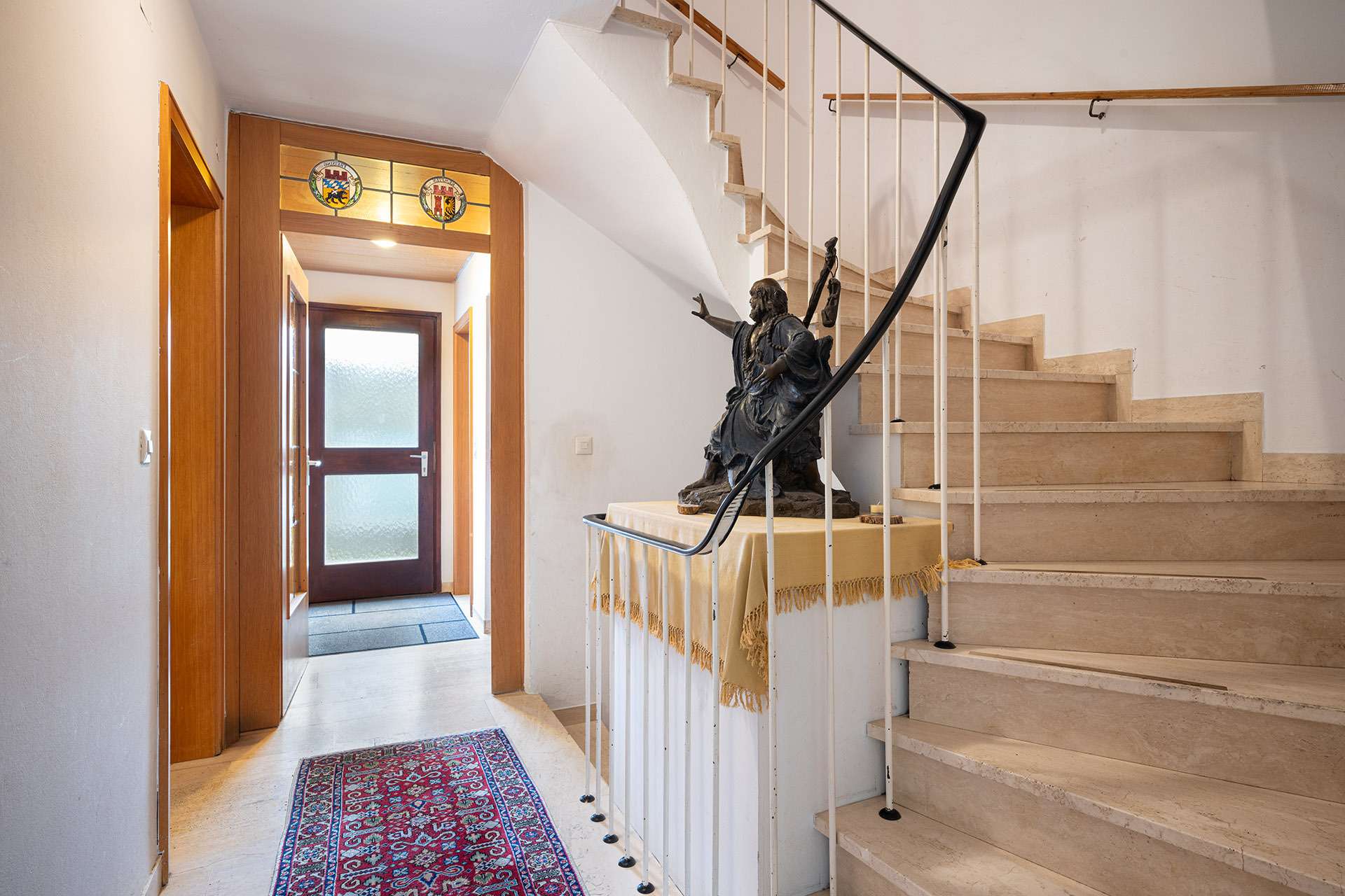 Das Haus mit seinen 7 Zimmern bietet reichlich Platz für Kinder, Büro, Gästezimmer, etc. Es ist in einem baujahrestypischen Zustand und bedarf umfangreicher optischer und technischer Renovierung. Pluspunkte sind die Größe, die Lage sowie das großzügige nach Südwesten ausgerichtete Grundstück. Die Immobilie selbst verfügt über ca. 403 m² Grund, die restlichen, ca. 80,3 m², entfallen auf die anteilige Zuwegung. Das Haus befindet sich in ruhiger, zurückgesetzter Lage, auf einer kleinen Anhöhe mit Blick über das Pullinger Moos. Im Erdgeschoss sind eine Gästetoilette, ein Abstellraum, die Küche mit großzügigem Essbereich sowie das Wohnzimmer mit Südwest-Terrasse. Das 1. Obergeschoss verfügt über 4 Zimmer, ein Badezimmer und einen Südwest-Balkon, das ausgebaute Dachgeschoss über 2 weitere Zimmer und ein Duschbad. Die Immobilie ist voll unterkellert.