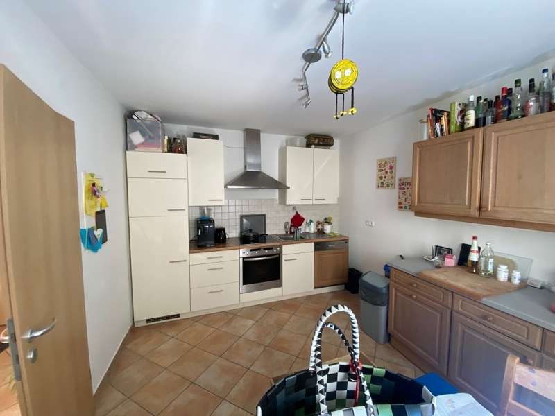 Im Eingangsbereich der Wohnung befindet sich das Wohnzimmer mit Zugang zu der traumhaften Süd-Dachterrasse und eine geräumige Wohnküche mit Küchenzeile. Vom Flur aus gelangt man über eine offene Holztreppe ins Dachgeschoss. Hier sind die beiden Schlafräume sowie ein Badezimmer mit Waschmaschinenanschluss und Tageslicht. Die Wohnung ist durchgehend mit Buche Parkett ausgestattet, Küche und Bad sind gefliest. Zur Wohnung gehört ein geräumiges Kellerabteil und eine Einzelgarage. Die Miete für die Einzelgarage beträgt € 30,-- monatlich und ist in der angegebenen Warmmiete bereits enthalten.
