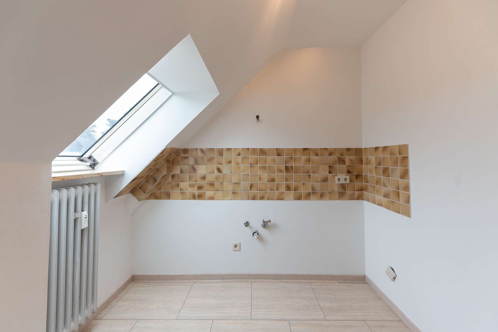 Das Wohnzimmer ist mit Eiche-Schiffsboden und das Schlafzimmer mit Mosaikparkett ausgestattet. In Küche, Diele und Bad ist Design-Vinylboden verlegt. Zusätzlich gehört zur Wohnung ein Tiefgarage Einzelstellplatz, der bereits im Kaufpreis enthalten ist. Ein Kellerabteil ist nicht vorhanden, dafür gibt es direkt neben der Wohnung einen sehr großen Dachspeicher. Die Tiefgarage wurde 2024 komplett saniert.