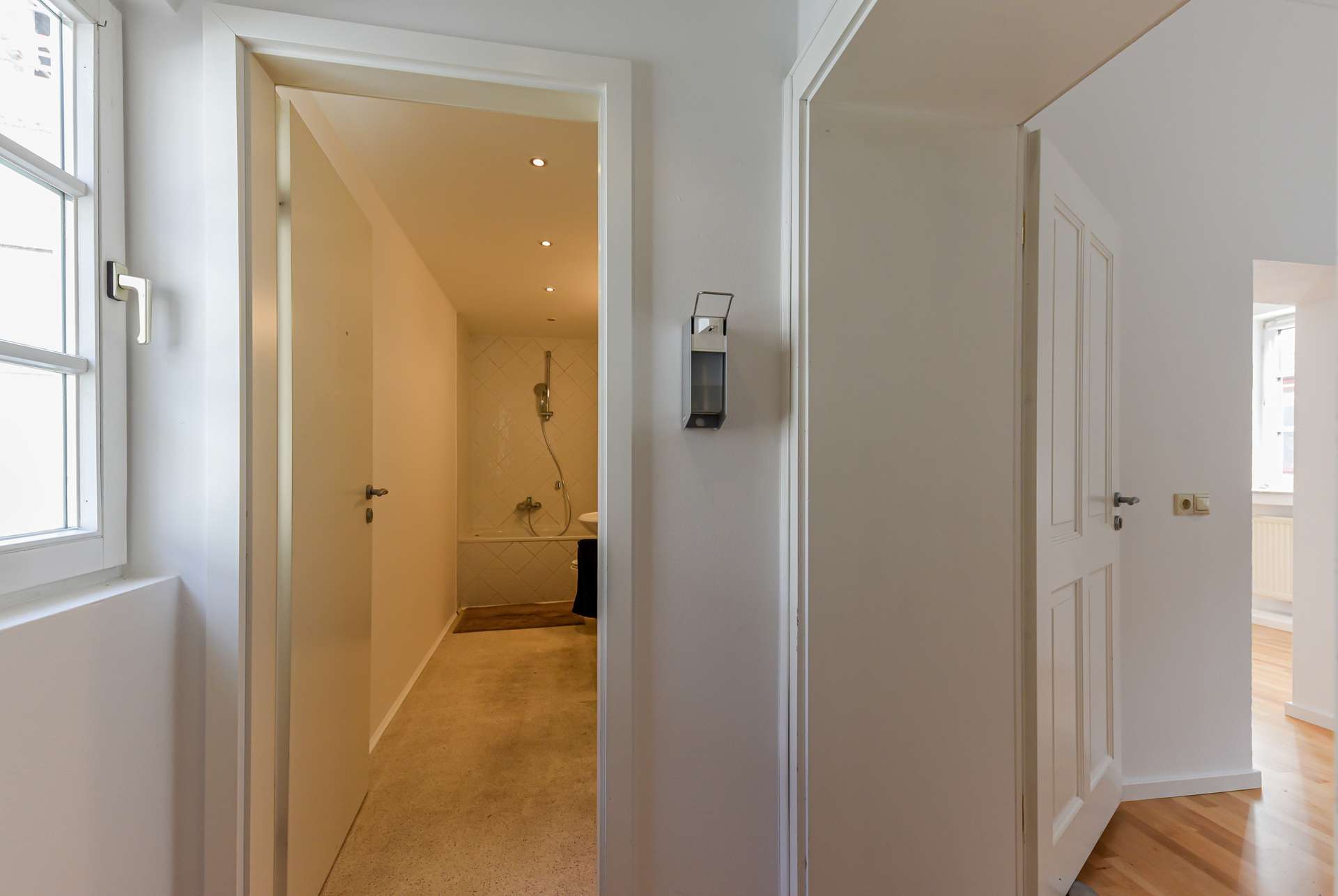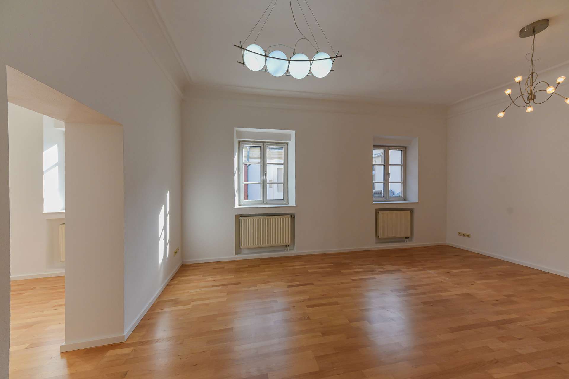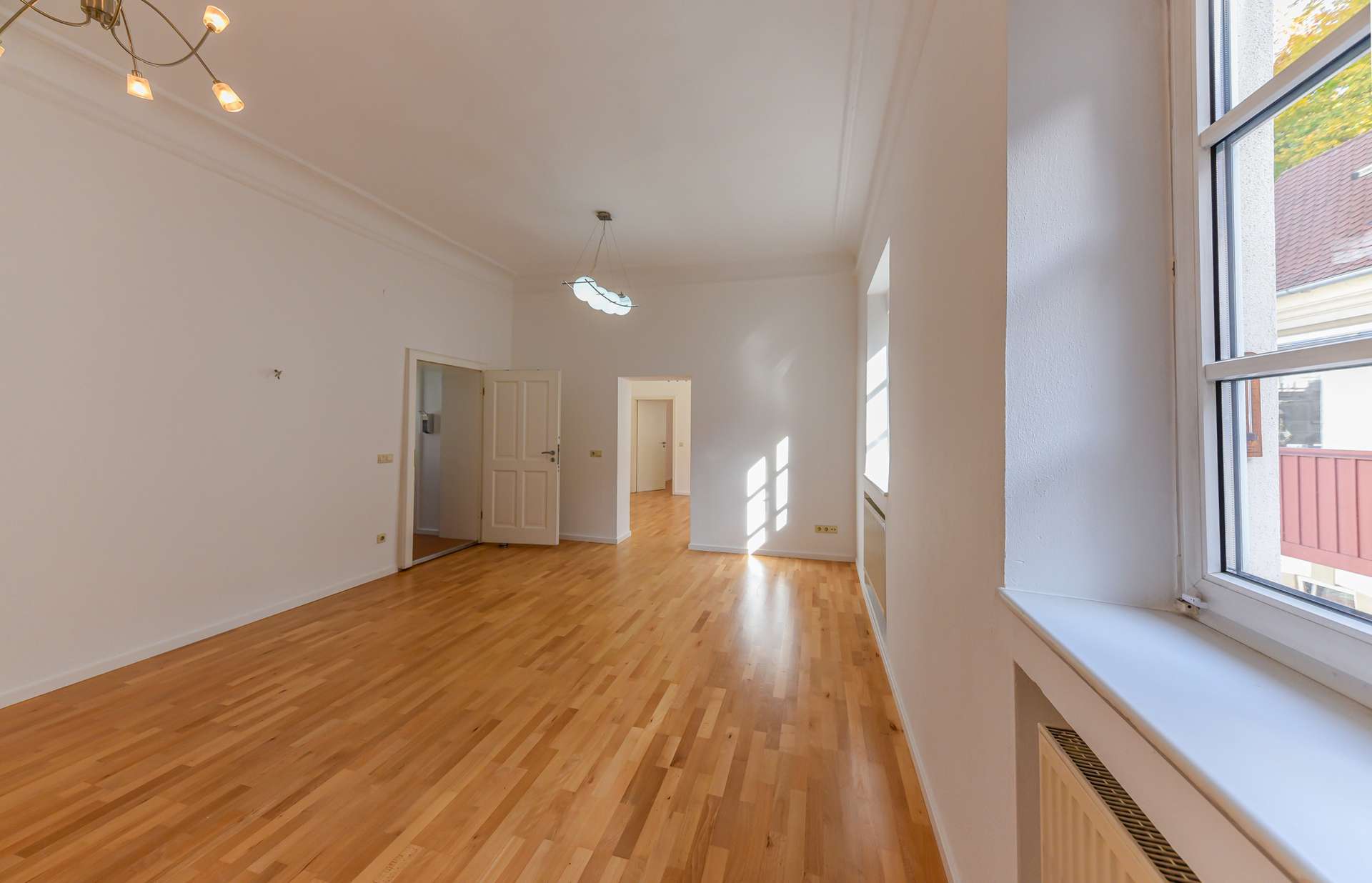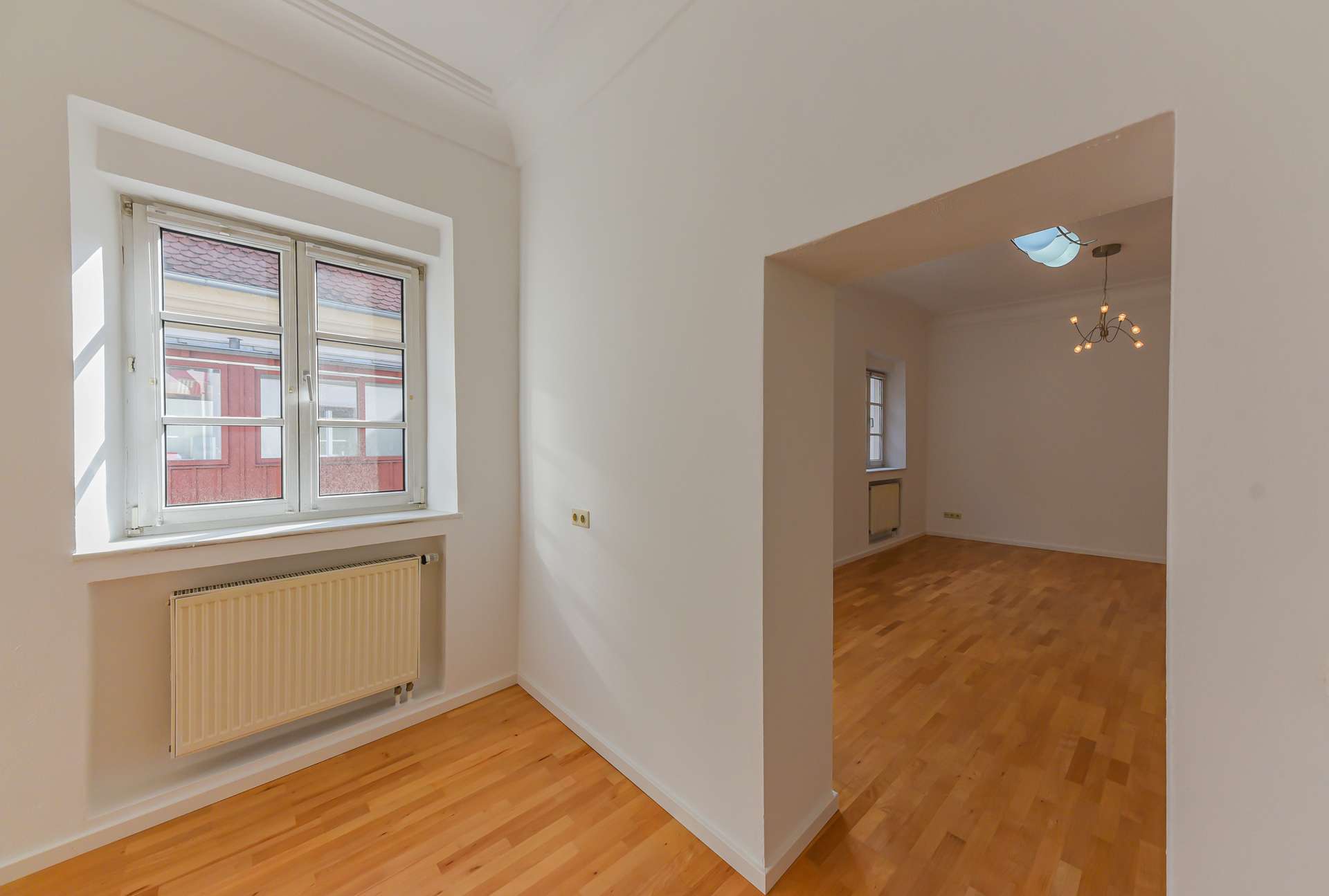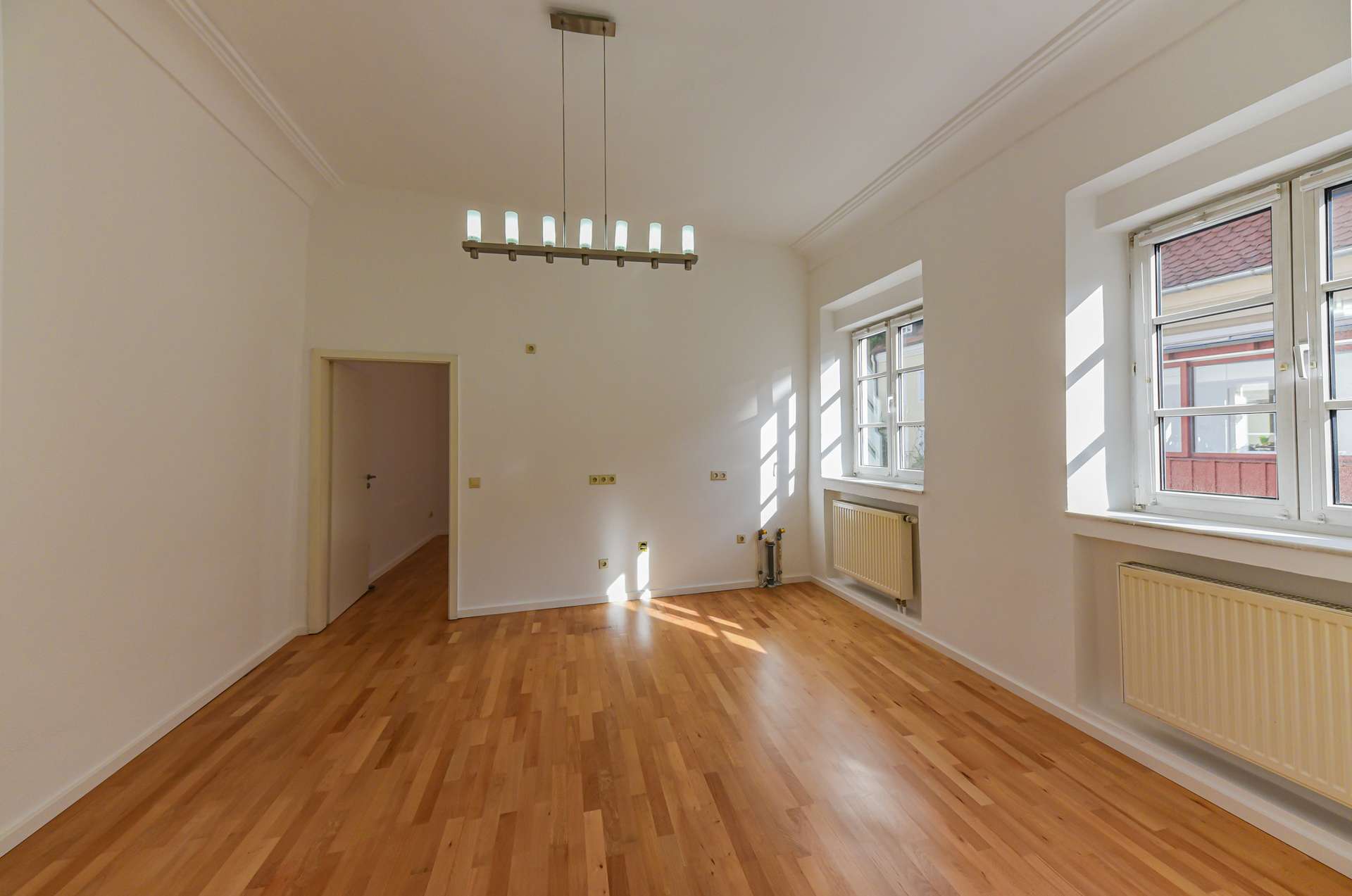 Bei diesem Angebot handelt es sich um eine attraktive Gewerbefläche, beispielsweise für ein Büro oder eine Praxis, inmitten der Freisinger Altstadt, am Fuße des Domberges. Die Einheit liegt im 1. Obergeschoss eines geschichtsträchtigen, denkmalgeschützten Freisinger Wohn- und Geschäftshauses, dessen erste Datierungen aus 1500 stammen. Betreten wird sie über einen langen, sehr hellen Flur, der gerade aus, das Badezimmer mit Waschmaschinenanschluss beherbergt, und zur Rechten die lichtdurchfluteten Gewerberäume erschließt. Der erste Raum würde sich beispielsweise als Empfangsbereich mit Arbeitsplätzen oder Wartebereich sowie als Büroraum für ein paar Arbeitsplätze anbieten. Der zweite Raum kann entweder ebenfalls als Bürofläche oder Behandlungszimmer genutzt werden, ist aufgrund der vorhandenen Anschlüsse allerding als Mitarbeiter- / Kaffeeküche angedacht. Der dritte, hinterste Raum eignet sich ebenso für ein Büro, Behandlungs-/ Besprechungszimmer. Ein besonderes Highlight dieses Objektes sind die überhohen, altbautypischen Decken sowie die Stuckelemente.