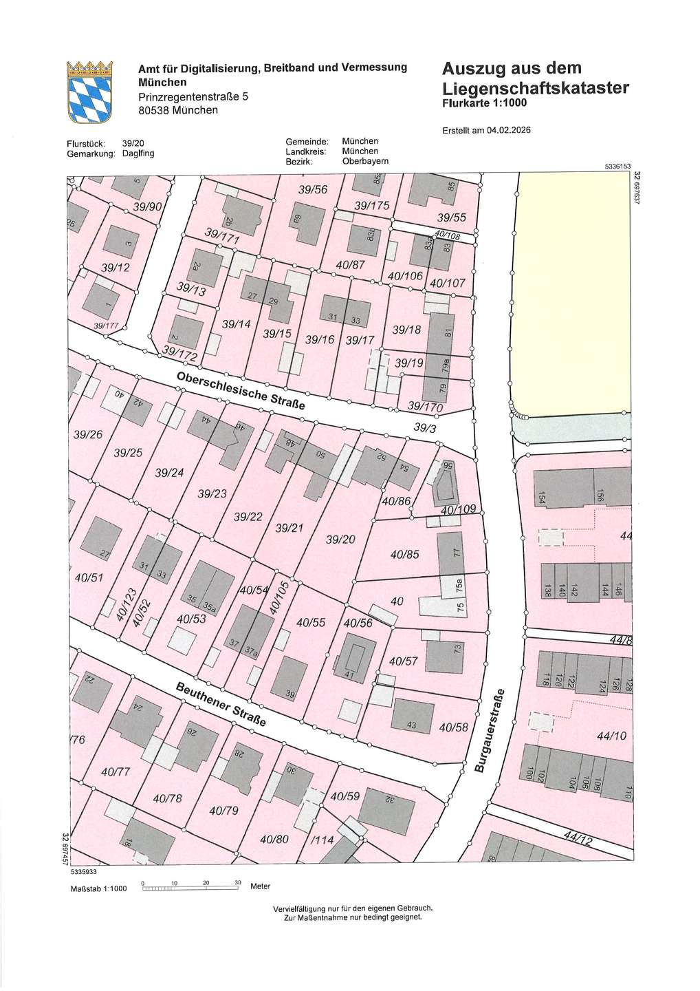 Das von uns exklusiv angebotene Baugrundstück erstreckt sich über ca. 870 m² Grundstücksfläche. Die ruhige Lage am Stadtrand ist gerade bei Familien sehr begehrt, da es eine Kombination aus ländlicher Ruhe und der guten Infrastruktur der Landeshauptstadt München ist. Der Baugrund befindet sich im Planungsbereich des §34 BauGB (Nachbarschaftsbebauung) in Verbindung mit den besonderen Siedlungsgebieten und den Rahmenplanungsgebieten. Als Referenzbaukörper dienen die Häuser in der umliegenden Nachbarschaft. Bemerkenswert ist der historische Gartenstadtcharakter. Bitte beachten Sie, dass wir zu den Bebauungskennzahlen im Exposé keine Haftung übernehmen.