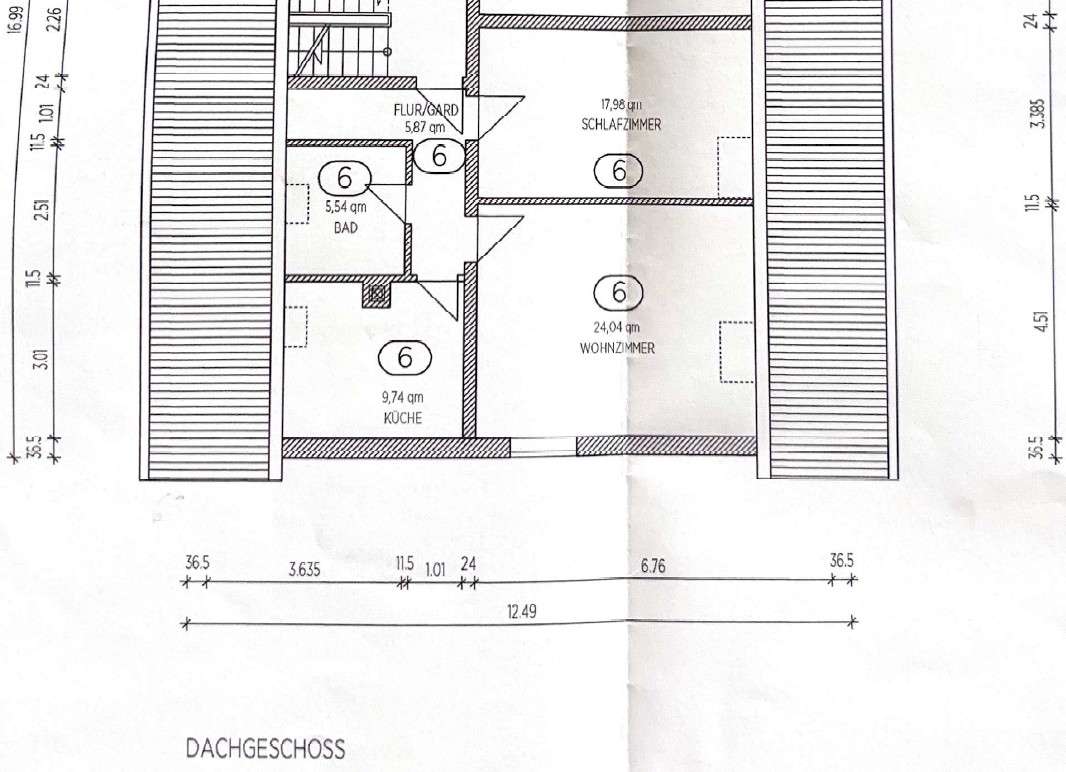 Es handelt sich hier um eine helle 2-Zimmer-Dachgeschosswohnung . Die Wohnung ist über das Treppenhaus erreichbar.
